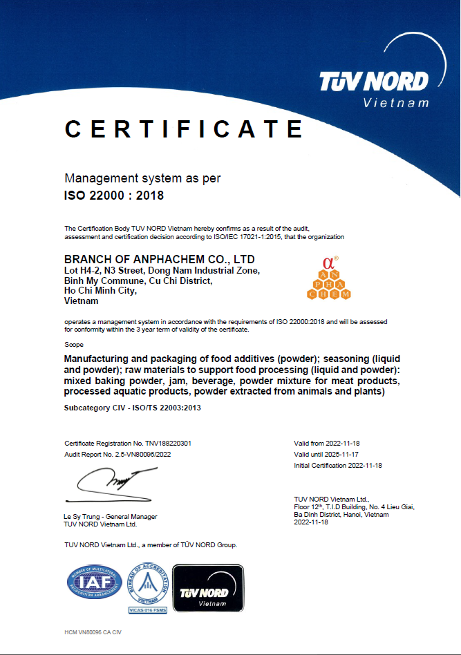 LÀ CÔNG TY CHUYÊN SẢN XUẤT VÀ NHẬP KHẨU PHỤ GIA TẠI VIỆT NAM, đồng thời cung cấp giải pháp trọn gói trong việc nghiên cứu, ứng dụng và tối ưu nguyên liệu/phụ gia vào thực phẩm cho các doanh nghiệp trong lĩnh vực sản xuất, chế biến và phân phối thực phẩm.
